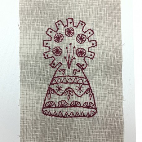 La Entretela impresa soluble Virgen del Pilar es una entretela adhesiva soluble al agua con un motivo impreso pensada para aplicar diseños decorativos en proyectos de patchwork y bordado creativo.