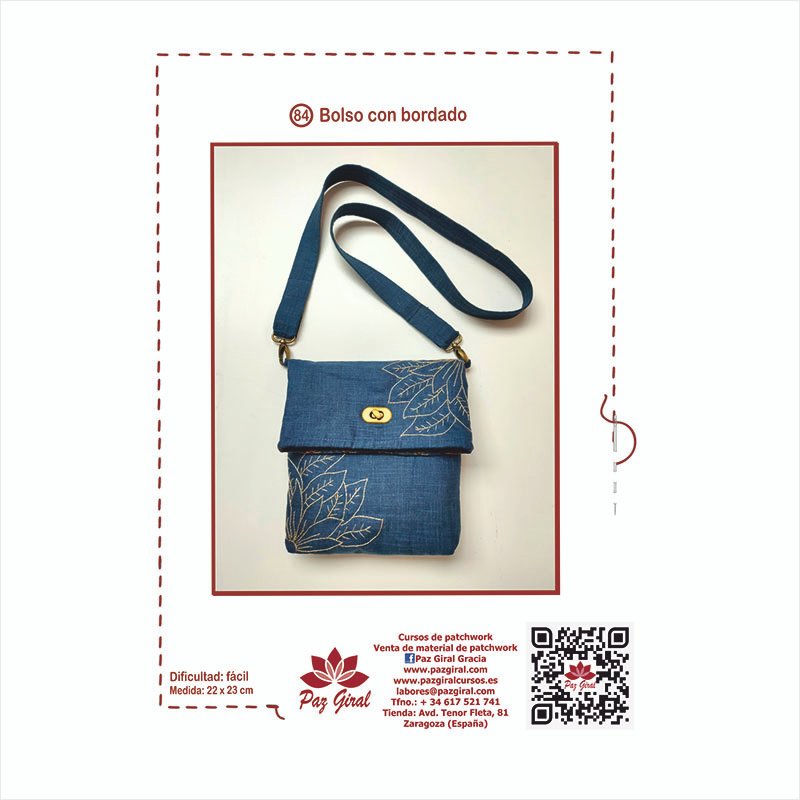 El Kit Bolso Bordado de Patchwork, diseñado por Paz Giral, es un proyecto de bolso pequeño para colgar, ideal como accesorio decorativo o práctico.