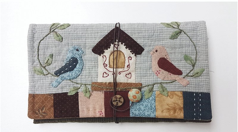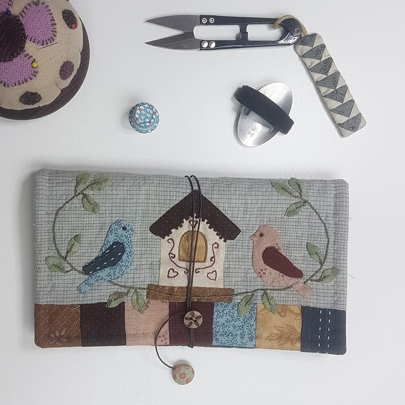 Kit Cartera Para Útiles De Costura Patchwork con telas, guata y cordón. Incluye instrucciones detalladas con ilustraciones y plantillas. Nivel inicial-medio.