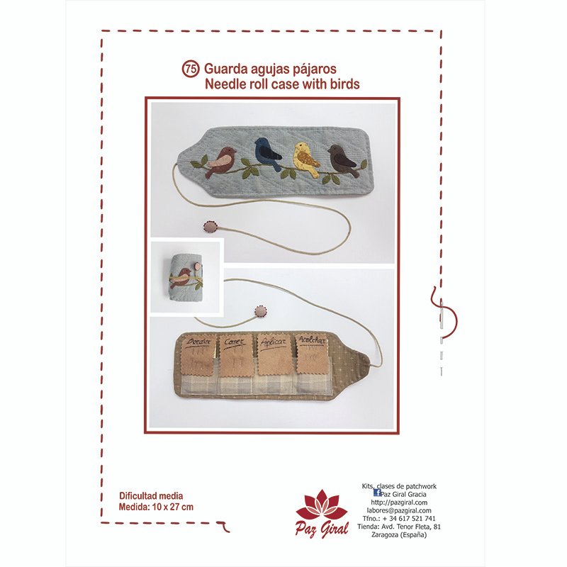 Kit Guarda Agujas Patchwork con telas, instrucciones detalladas con ilustraciones y plantillas a tamaño real. Nivel media.