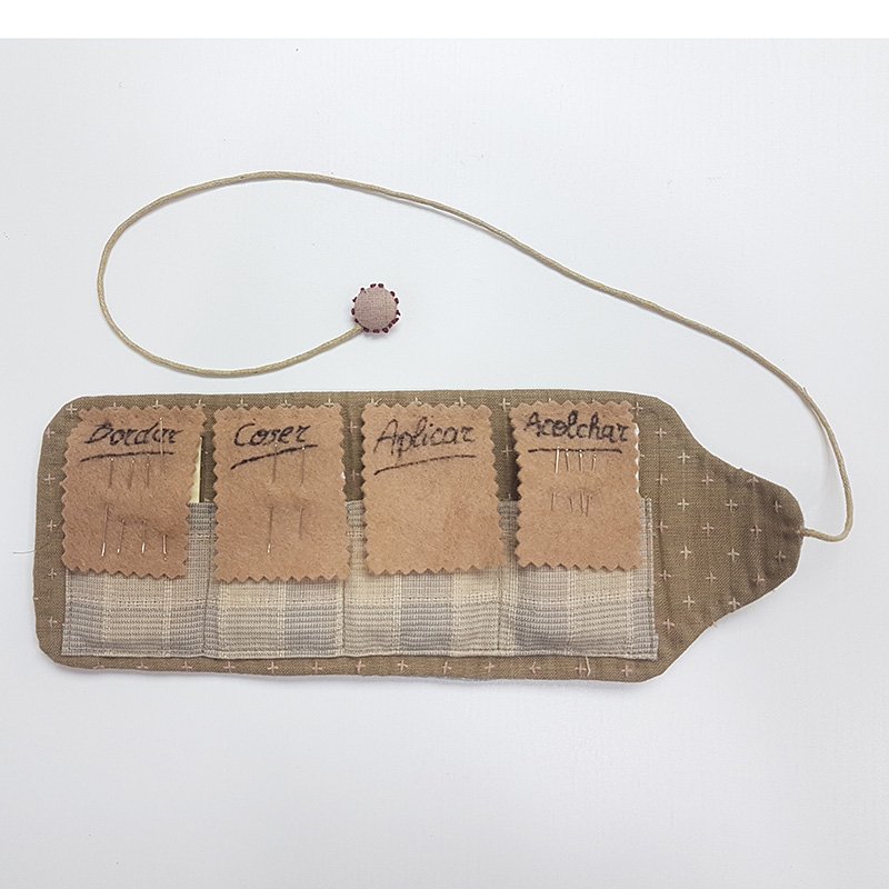 El Kit Guarda Agujas Patchwork, diseñada por Paz Giral, es un estuche alargado con cierre de botón y detalle de pasamanería para guardar agujas. Incluye todos los materiales para coser en casa, seguir las instrucciones paso a paso y aprender durante el proceso.