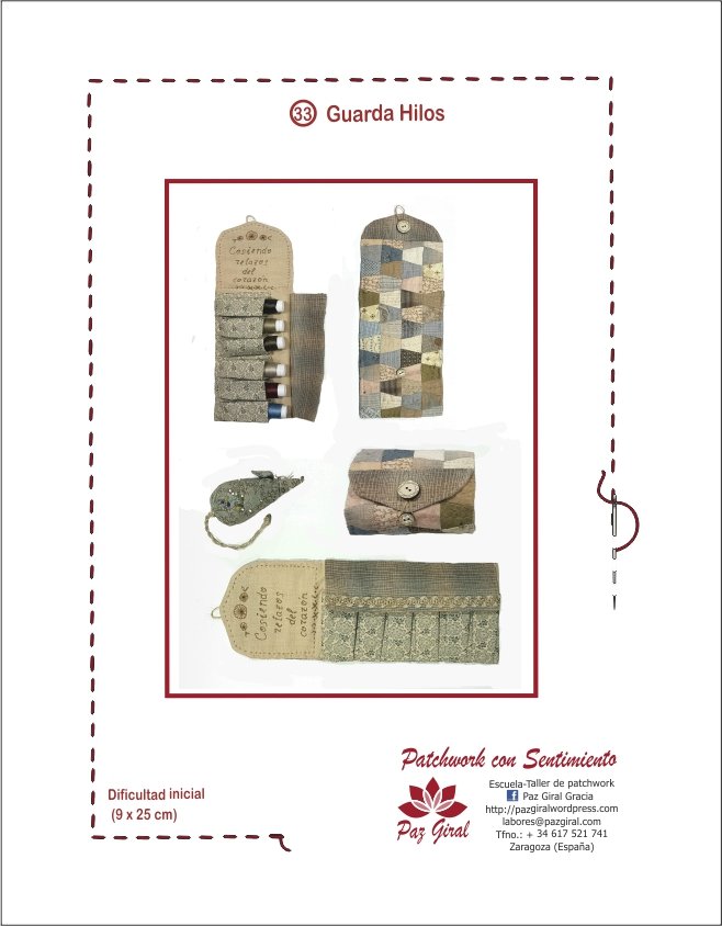 Kit Guarda Hilos Patchwork con telas, instrucciones detalladas con ilustraciones y plantillas a tamaño real. Nivel media.