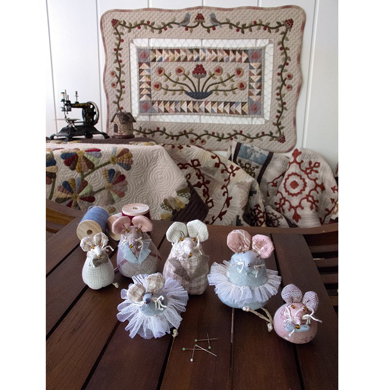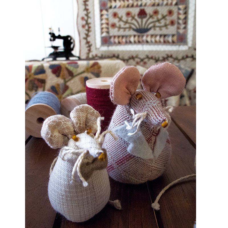 Kit Ratones Alfiletero Patchwork con telas, instrucciones detalladas con ilustraciones y plantillas a tamaño real. Nivel inicial.