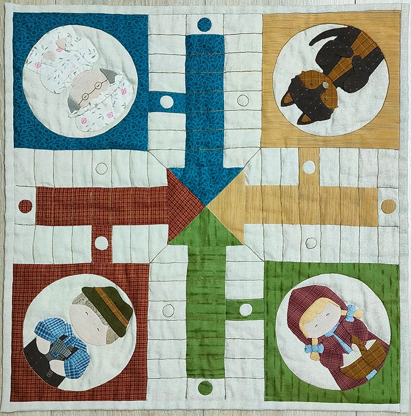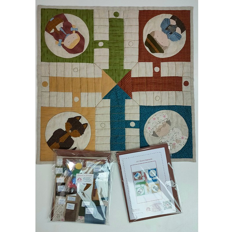 El parchís con telas patchwork, diseñado por Paz Giral, Disponible bajo previa petición y según disponibilidad de materiales. Perfecto para coser en casa y aprender durante el proceso.