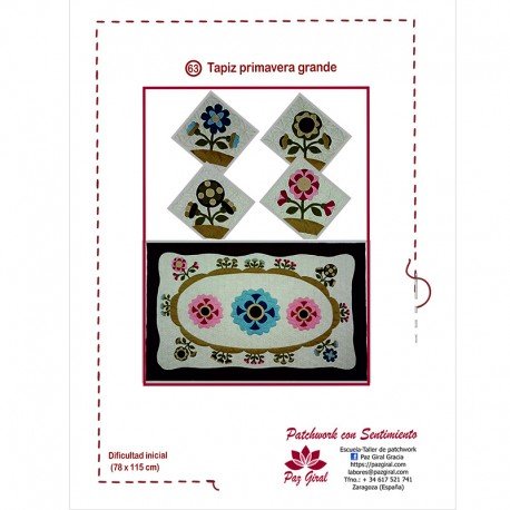 El tapiz primavera grande pdf patchwork, diseñado por Paz Giral, Tapiz para colgar o pie de cama. Incluye las plantillas e instrucciones necesarias para imprimir y realizar el proyecto con tus propios materiales.