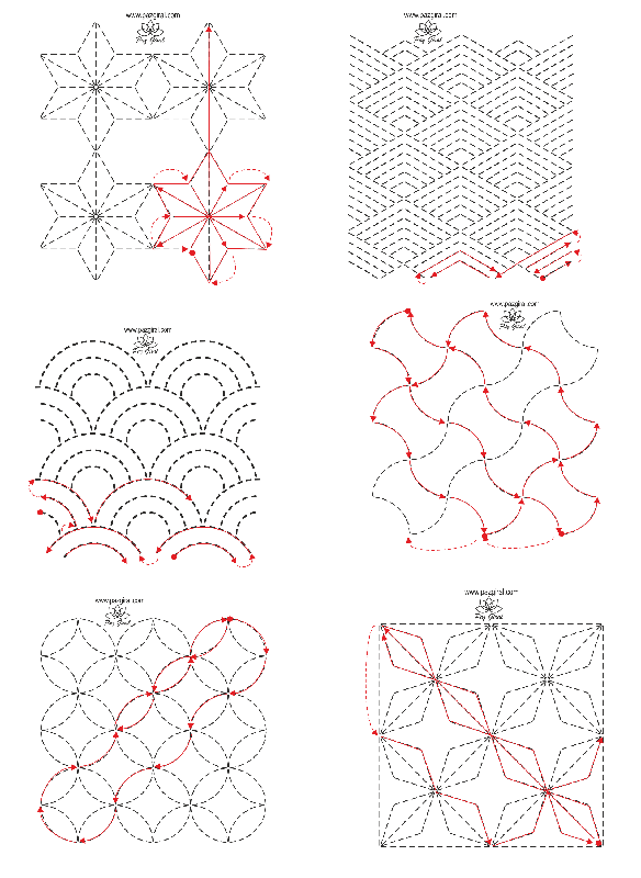3. Intenta hacer el bordado de manera continua, para ello sigue los esquemas de bordado de más abajo.